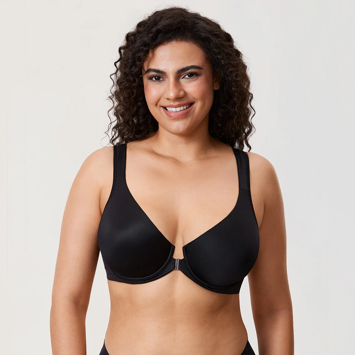 Front close offers ultimate convenience, making it easier on and off