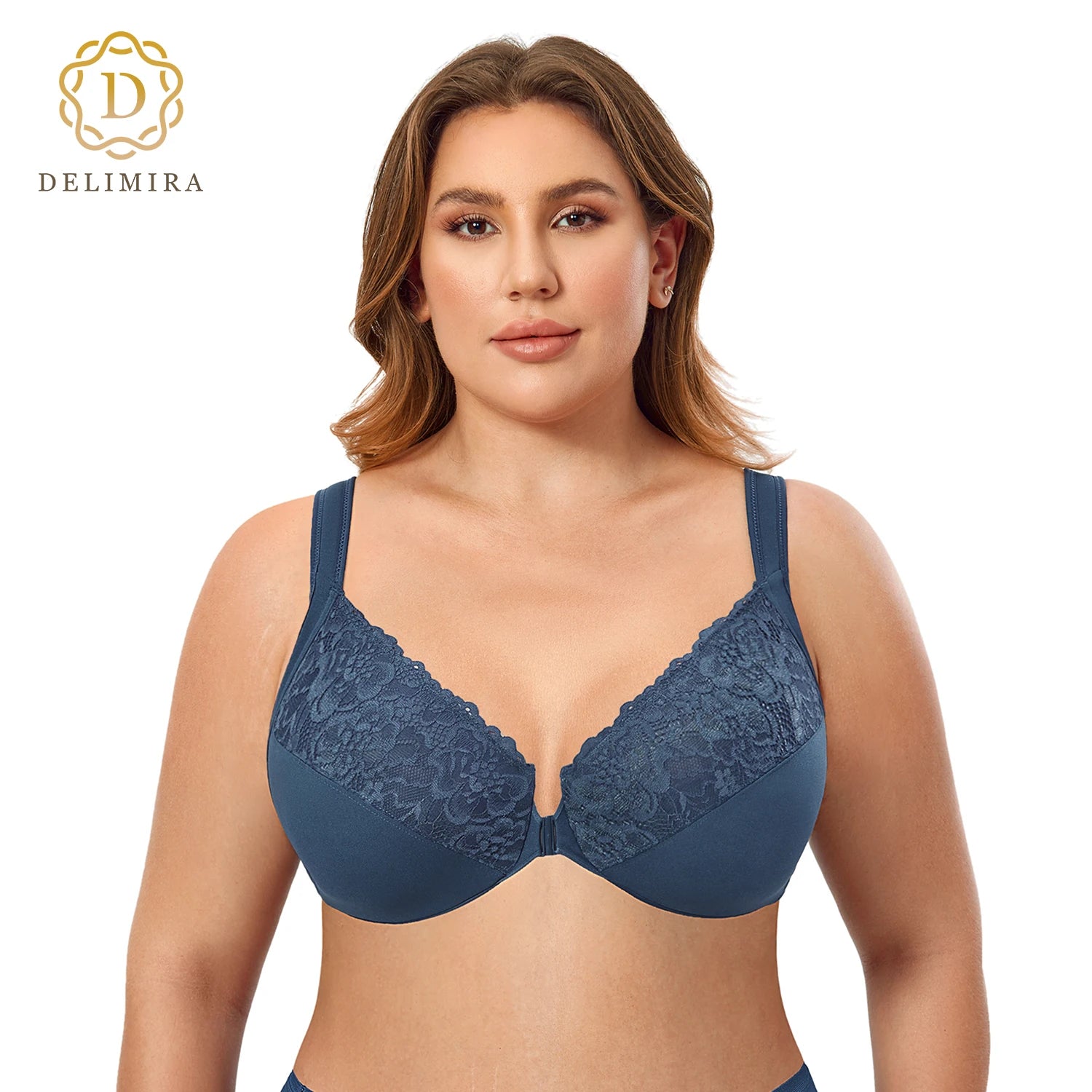 Front closure bras are much easier to put on and off. With underwire and cushioned padded comfortable straps to relieve shoulder pressure and perfect adjustment to your fit. This bra will be your everday go to bra. With lace to offer side support and control for our full figures.