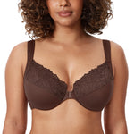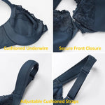 Front closure bras are much easier to put on and off. With underwire and cushioned padded comfortable straps to relieve shoulder pressure and perfect adjustment to your fit. This bra will be your everday go to bra. With lace to offer side support and control for our full figures.
